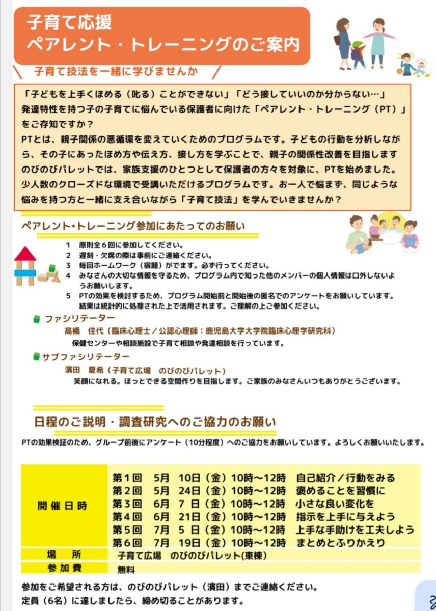 子育て応援 ペアレント・トレーニングのご案内